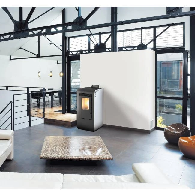 Grâce à sa puissance de 10kW et à son rendement exceptionnel de 93%, le poêle Baggia est capable de chauffer jusqu’à 95m². Ce poêle à granulés au design moderne est disponible en 3 coloris (noir, bordeaux et blanc). Muni d’un braséro en fonte haute résistance, il est également équipé d’une télécommande pour un pilotage à distance.